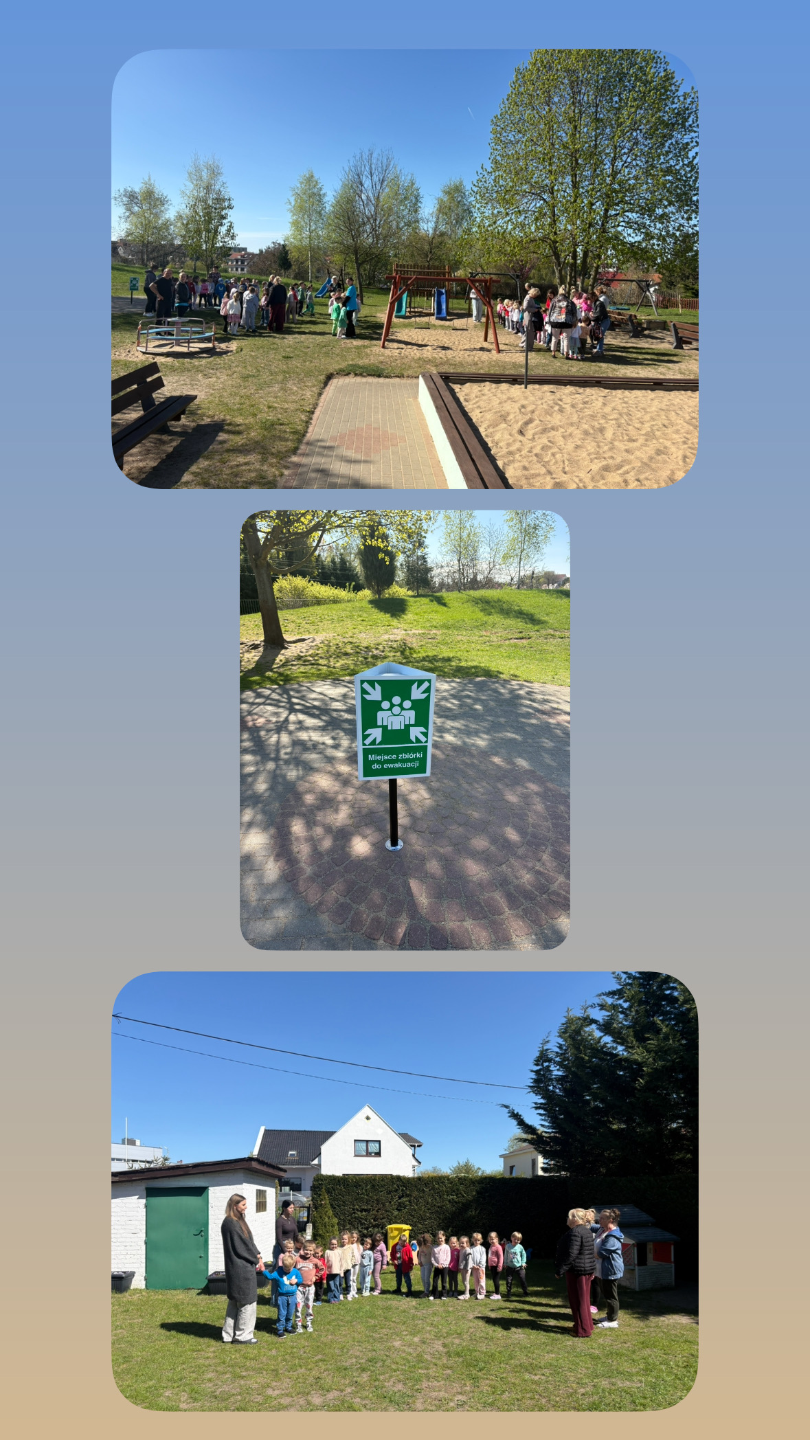 Po usłyszeniu sygnału alarmowego 🚨wszystkie grupy wraz z nauczycielami i personelem opuściły budynek wyznaczonymi drogami ewakuacyjnymi i udały się do miejsca zbiórki. Ewakuacja przebiegła sprawnie i bez zakłóceń. Dzieci zachowywały się spokojnie i stosowały się do poleceń nauczycieli👏.