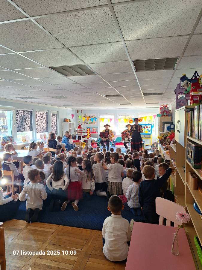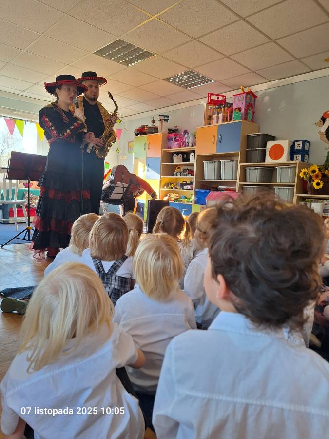 W naszym przedszkolu odbył się koncert muzyczny „Psotny Chochlik w gitarowym pudle”. Dzieci przeniosły się w świat dźwięków gitary🎸, ale też innych instrumentów🎷. Dzięki temu spotkaniu przedszkolaki nauczyły się słuchać muzyki 🎶z wyobraźnią i przeżyły wiele radosnych chwil.