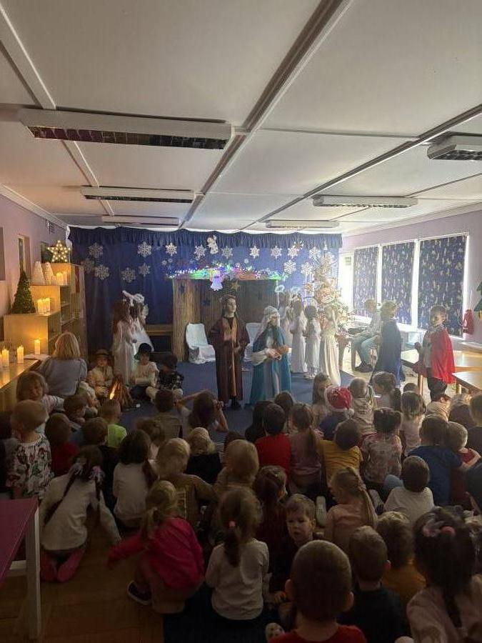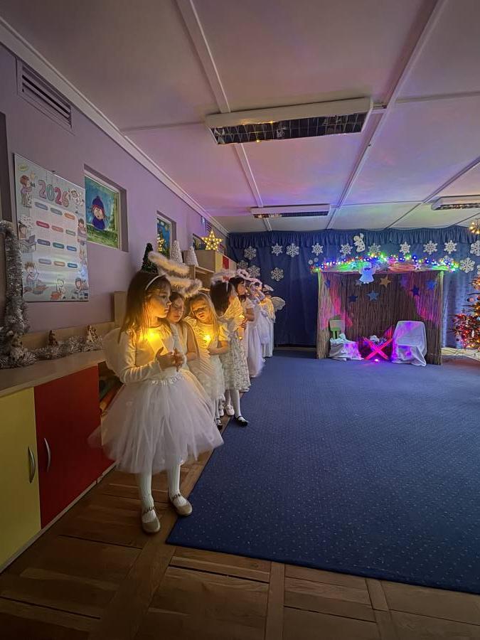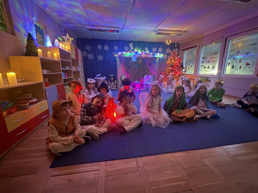 W naszym przedszkolu odbyły się tradycyjne jasełka🌟, które wprowadziły wszystkich w świąteczny nastrój. Dzieci z wielkim zaangażowaniem zaprezentowały historię narodzin Dzieciątka Jezus, zachwycając pięknymi strojami, tańcem 🕯️, kolędami🎶 i grą aktorską👏. Dziękujemy przedszkolakom za wspaniały występ, nauczycielom - pani Iwonie i pani Hani za przygotowanie jasełek oraz rodzicom za wsparcie i obecność.