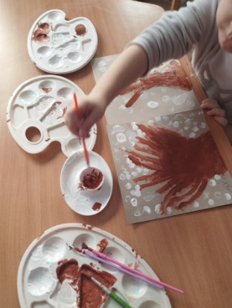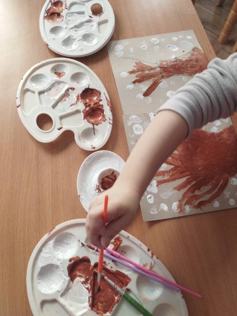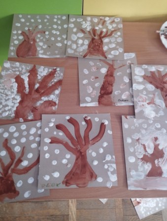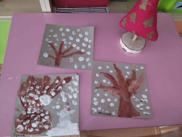 Dzieci z grupy Niezapominajki malowały zimowe drzewo farbami przy użyciu palców, rozwijając kreatywność i sprawność manualną.❄️❄️❄️