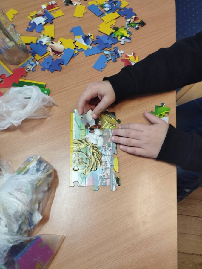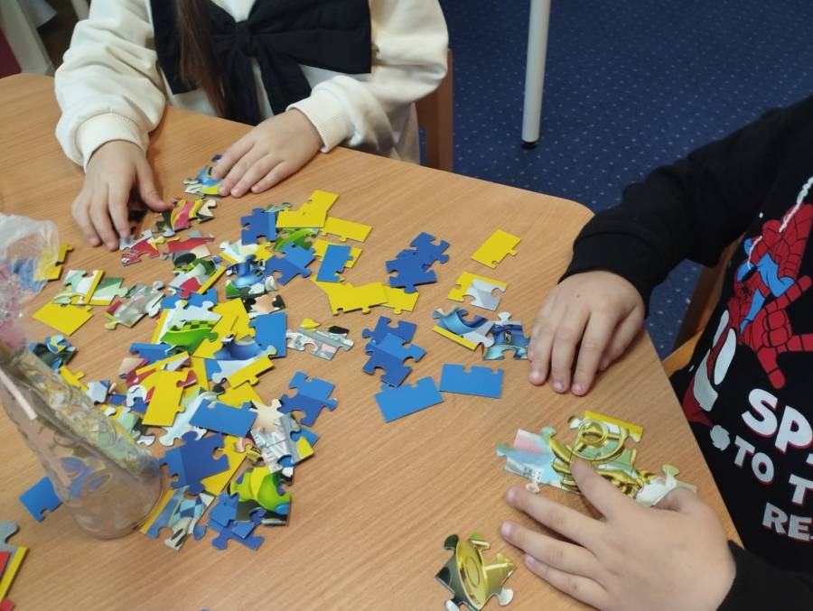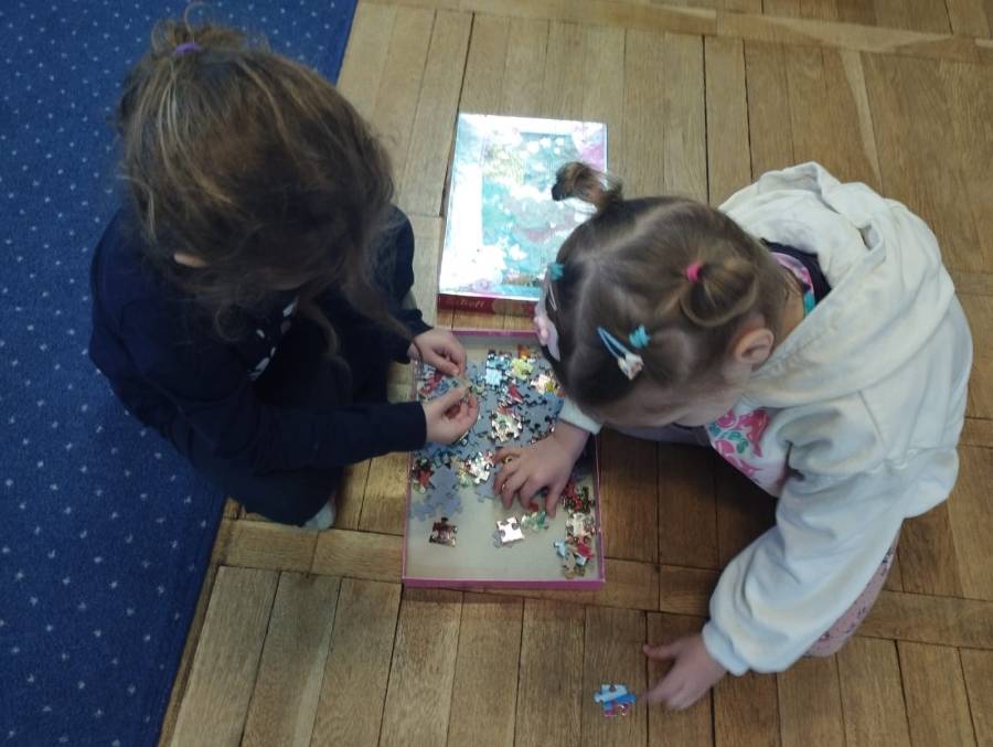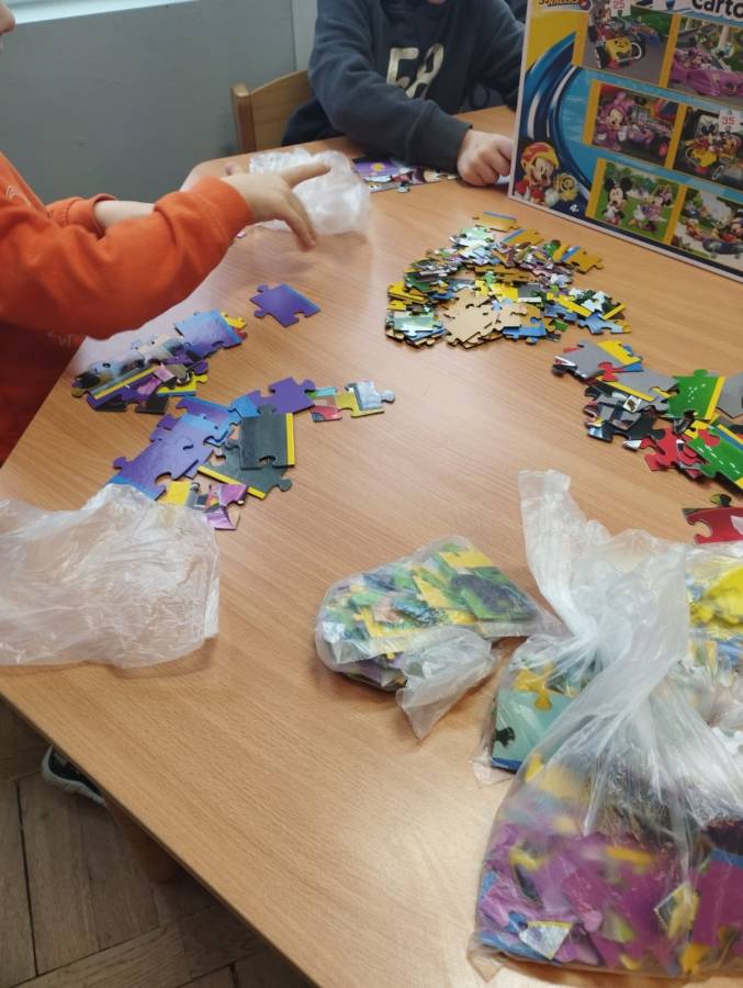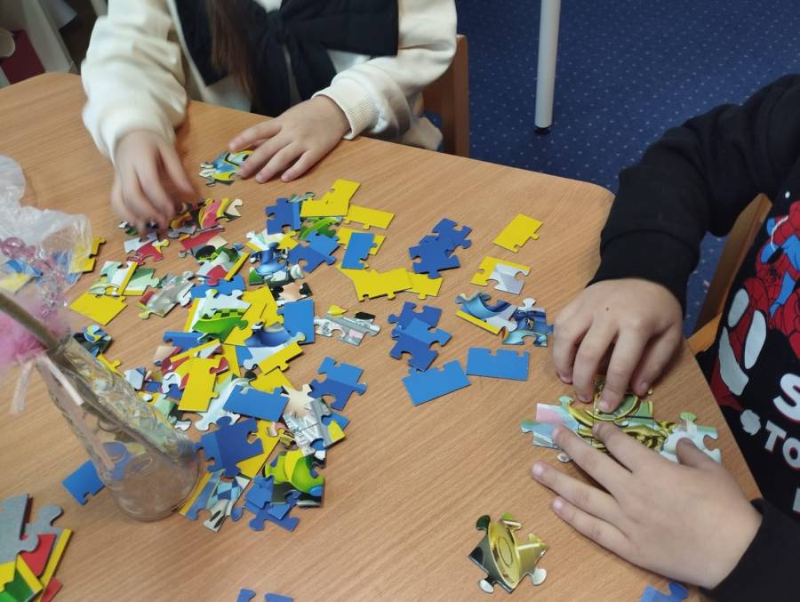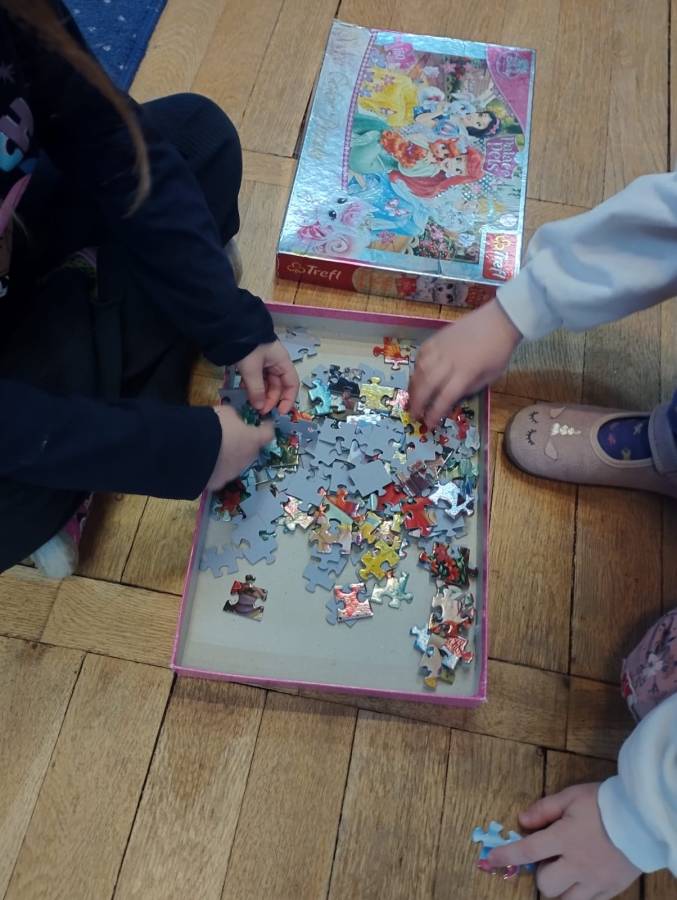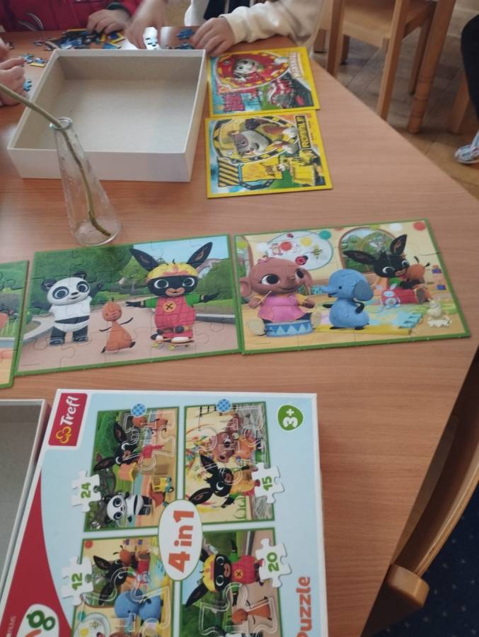 Dzieci z radością obchodziły Dzień Puzzli, układając obrazki o różnym stopniu trudności👏. Zabawy rozwijały spostrzegawczość, logiczne myślenie oraz umiejętność współpracy. To był dzień pełen skupienia i dobrej zabawy👍!