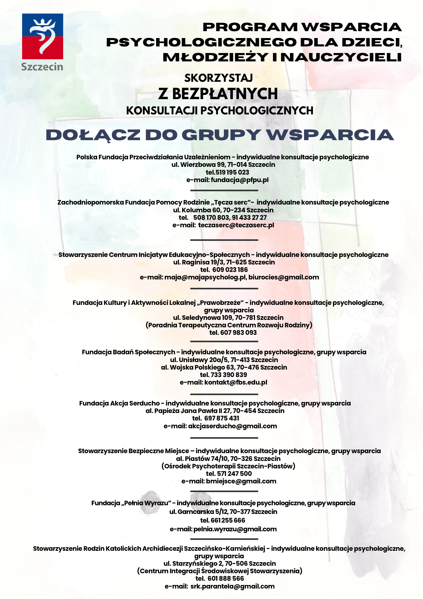 "Moc w Tobie - bezpieczeństwo w Nas" - organizacje udzielające wsparcia