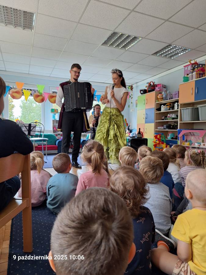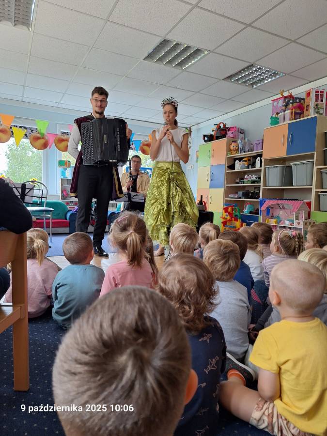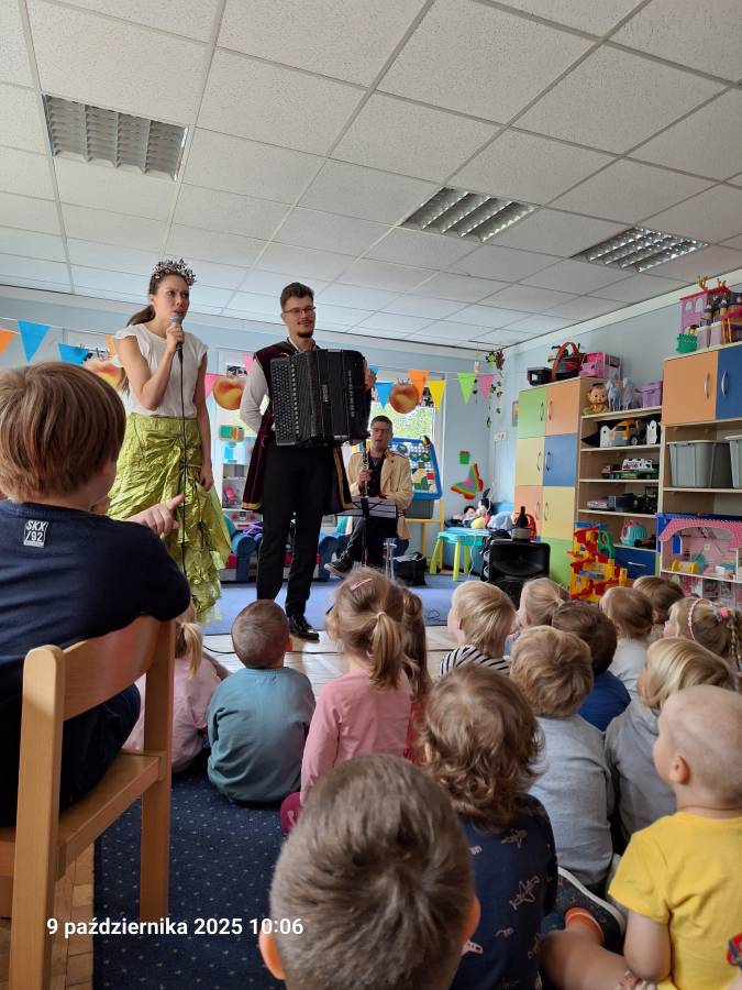 Ostatnio nasze kochane przedszkolaki miały okazję wysłuchać koncertu pt. Bajeczne przygody Wodnika Wędrownika. Była to wyśmienita okazja do towarzyszenia głównemu bohaterowi w jego przygodach, które miały wydźwięk muzyczny. Dzieci poznały także instrumenty muzyczne takie jak klarnet akordeon.