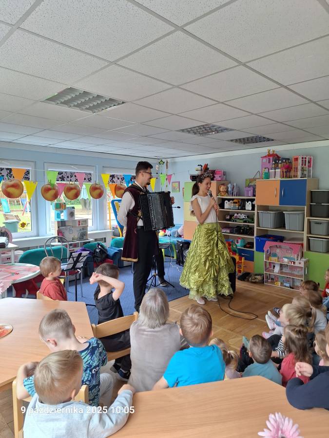 Ostatnio nasze kochane przedszkolaki miały okazję wysłuchać koncertu pt. Bajeczne przygody Wodnika Wędrownika. Była to wyśmienita okazja do towarzyszenia głównemu bohaterowi w jego przygodach, które miały wydźwięk muzyczny. Dzieci poznały także instrumenty muzyczne takie jak klarnet akordeon.